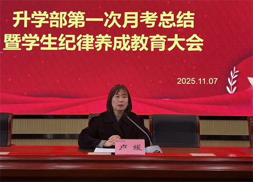 卢媛主任在讲话中强调,对于升学班学生而言,纪律是通往大学的“隐形准考证”:课堂专注是抢占“有效学习时间”,按时完成作业是规避知识漏洞,规律作息是储备学习精力;而主动预习、整理错题等备考习惯,更是大学生活的“提前预演”,既能提升备考效率,更能帮助学生适配大学自主学习节奏。结合学生一日常规,卢主任还梳理了当前需改进的行为问题,明确纪律是“健康成长的明灯”,从遵守着装仪表规范、维护课堂秩序,到杜绝违纪行为、培养文明习惯,这些细节既是备考路上的重要保障,也是职业素养与责任感的核心养成路径。