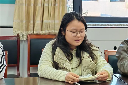 在成果交流环节,实习教师代表胡安娜以教学实践为根基,从课堂授课技巧、班级管理策略、专业能力提升三个维度,分享了自己的成长历程。她生动讲述了从“备课紧张”到“从容授课”的转变,展现了实习教师积极进取的风貌。