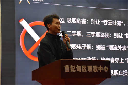 为帮助学生自觉远离烟草危害,培育科学健康的生活理念,10月10日上午,曹妃甸区职教中心(高级技校)开展了控烟教育及健康生活方式专题讲座。活动特邀唐山市疾控中心健康教育所的专家团队走进校园,为同学们带来了一场内容丰富、形式生动的健康知识盛宴。
